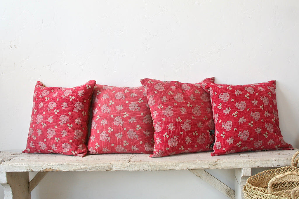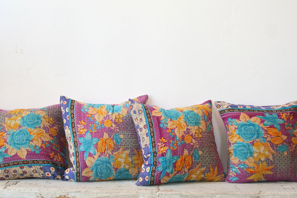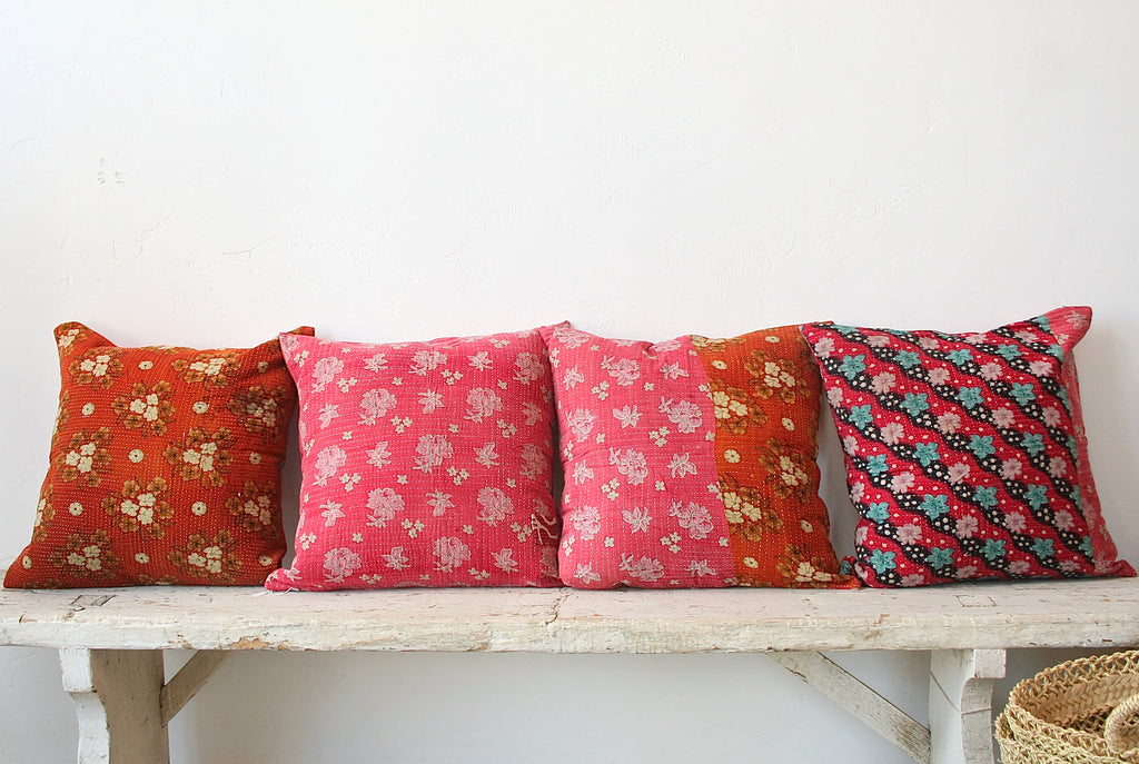 New one of a kind pillows made from recycled kanthas <3 The colors and patterns are so pretty! Now available in our online shop - home section :)
