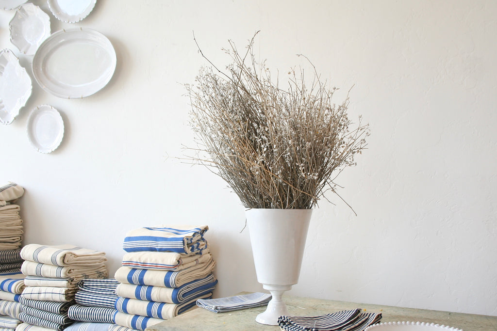 The most beautiful patchwork quilts have arrived at the shop and we have added them to our online shop. These are made of the sweetest combination of fabrics that come from vintage saris. Made in two of our favorite colors - there is a pink version and a dark blue version with a large polkadot like pattern. We love these with the polkadot duvets and pillowcases which we have also restocked. The quilts are lightweight with dense stitching, giving them a beautiful texture and feel. It is always so wonderful to really feel the hand in something, and with these quilts this exists in the quickest of glances. They are delightful! You can see more in our online shop - home section, a several rows down :)