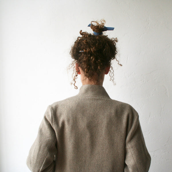 We have some beautiful coats in the shop at the moment. The top three photos show a coat in two different colors from Ichi Antiquités. This coat is knee length, has two big front pockets and has the loveliest collar. It is made of wool, lined with linen and cotton. It comes in a light oatmeal color and a darker brown as seen in the third picture. The next two photos show a felted wool coat by Le Vestiaire de Jeanne. This is made of a hefty wool- it will indeed keep you warm. The last photos show a coat made of the same material by Le Vestiaire de Jeanne as well. This one has a great cut with extra deep pockets in the front along the seam and a slit at the back with a button closure. It also has sleeves that hit at the knuckles... making it super warm around the hands. The sleeves can also be rolled for a different look <3
