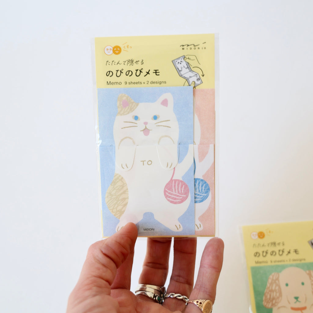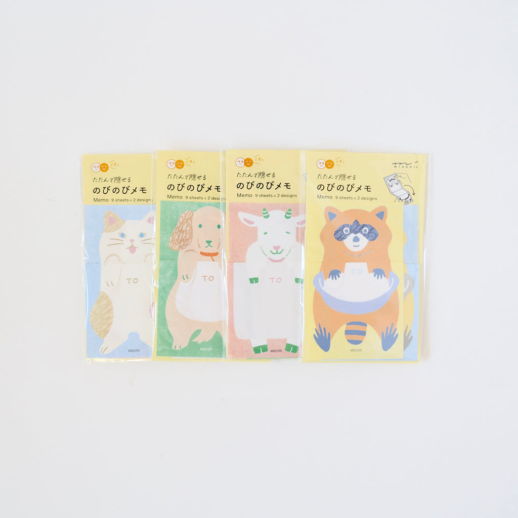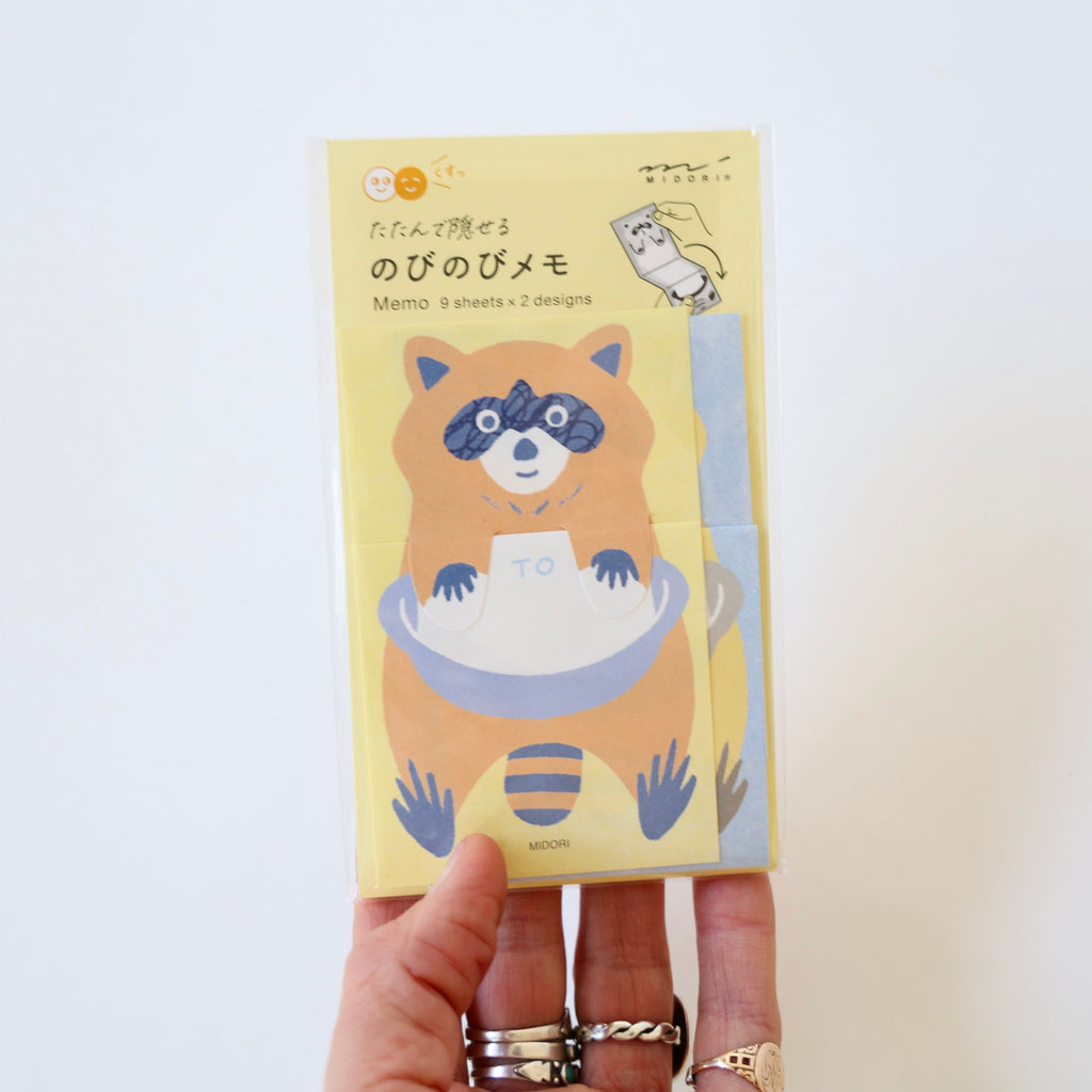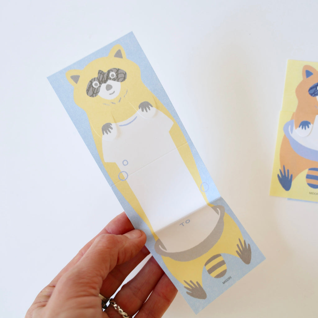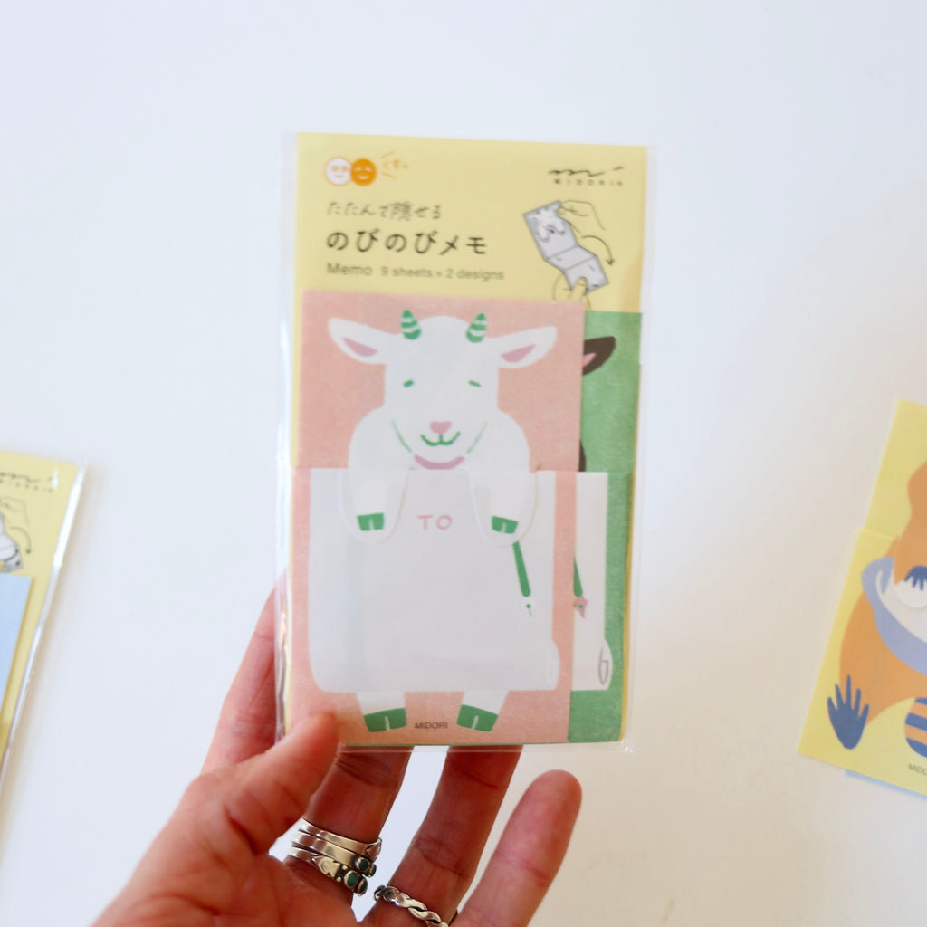 These are super sweet note sets of folding memo paper. There are four different animal designs - each set comes with 18 sheets of the same animal with 2 color variations (9 sheets of each color). Each memo paper folds up to hide the message and is held by the animal's paws. It can then be unfolded to read the message. Delightful! And wonderful for a stocking gift <3