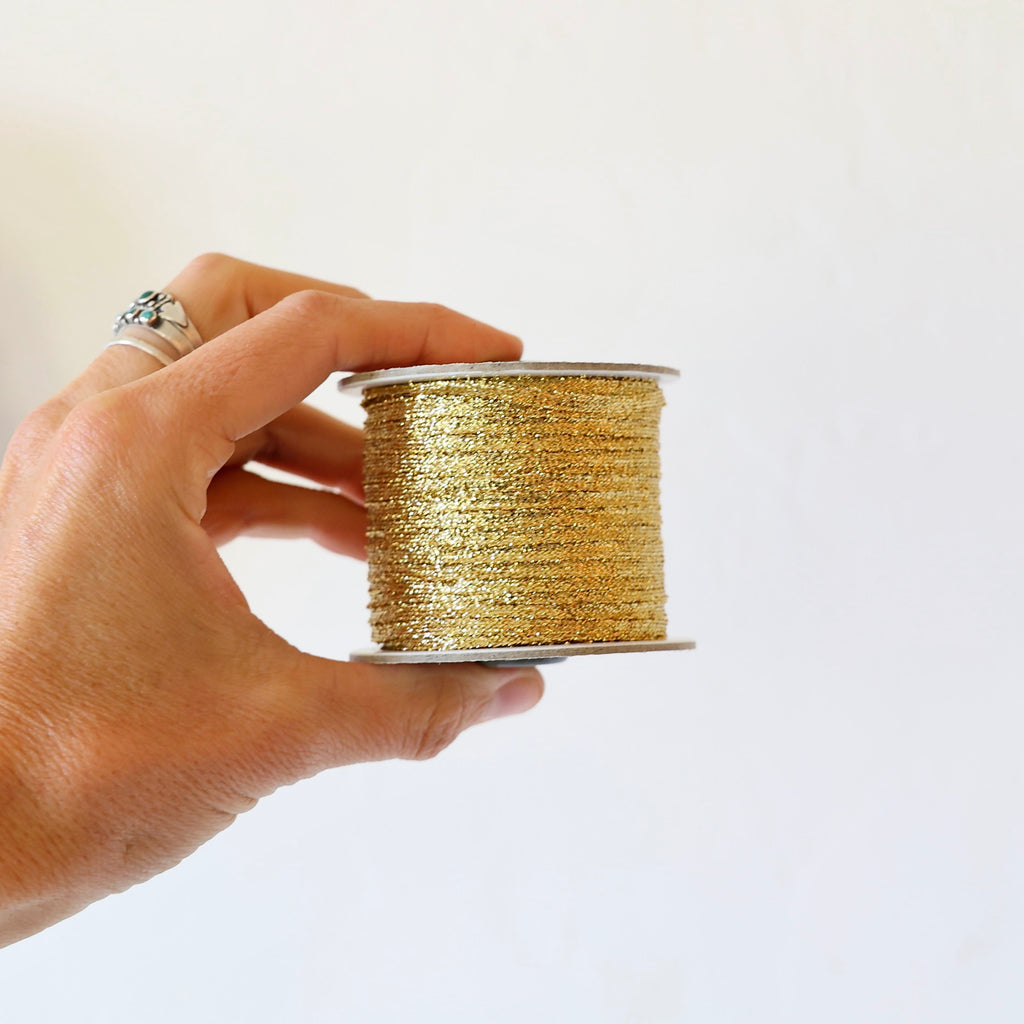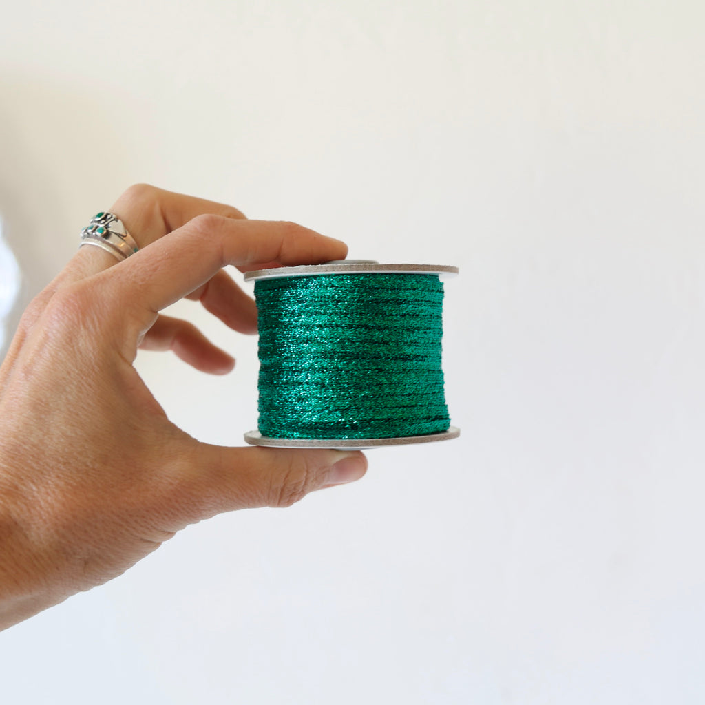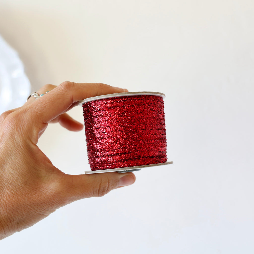 Metallic Braided Ribbon - 3 Colors $ 92.00 Description A roll of 109 yards of beautiful braided ribbon in your choice of red, gold and emerald. This is 1/8" wide - it adds just the right amount of shine to your gift! Made in Italy, packaged in the US color red - $ 92.00 gold - $ 92.00 emerald - $ 92.00