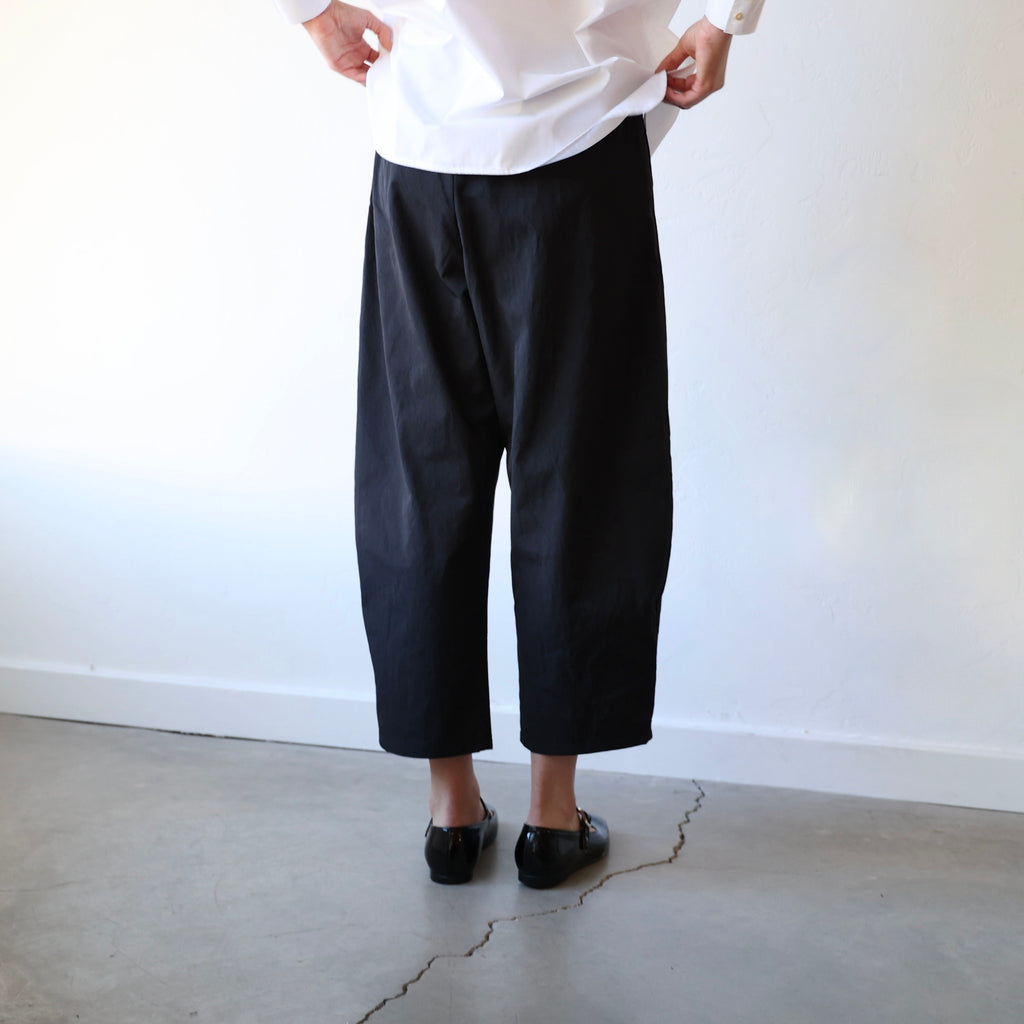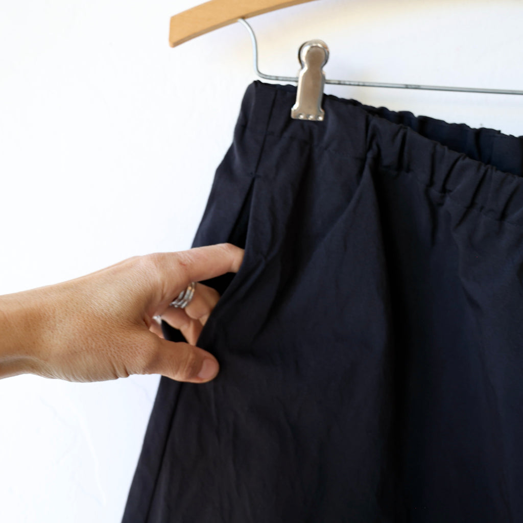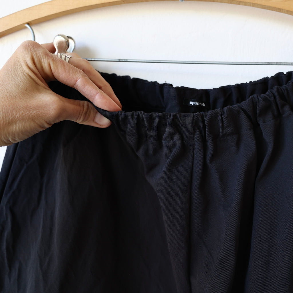 These are wonderful trousers made of a cotton mixed with poly which gives them a great texture. These have a sturdy structure, which we love in these pants because it allows them to hold their great shape. They are incredibly comfortable and very flattering because of the cut of the leg which has a rounded shape. They have an elastic waist for easy wear and comfort. There are side seam pockets. This is one of Apuntob's classic trouser cuts that we love and typically carry each season in different colors and fabrics. We show them with the A'Court Portobello Shirt in white, and they look great with lots of different pieces. We also love them with the Extreme Cashmere pullovers - both the turtleneck and the Mike crewneck.