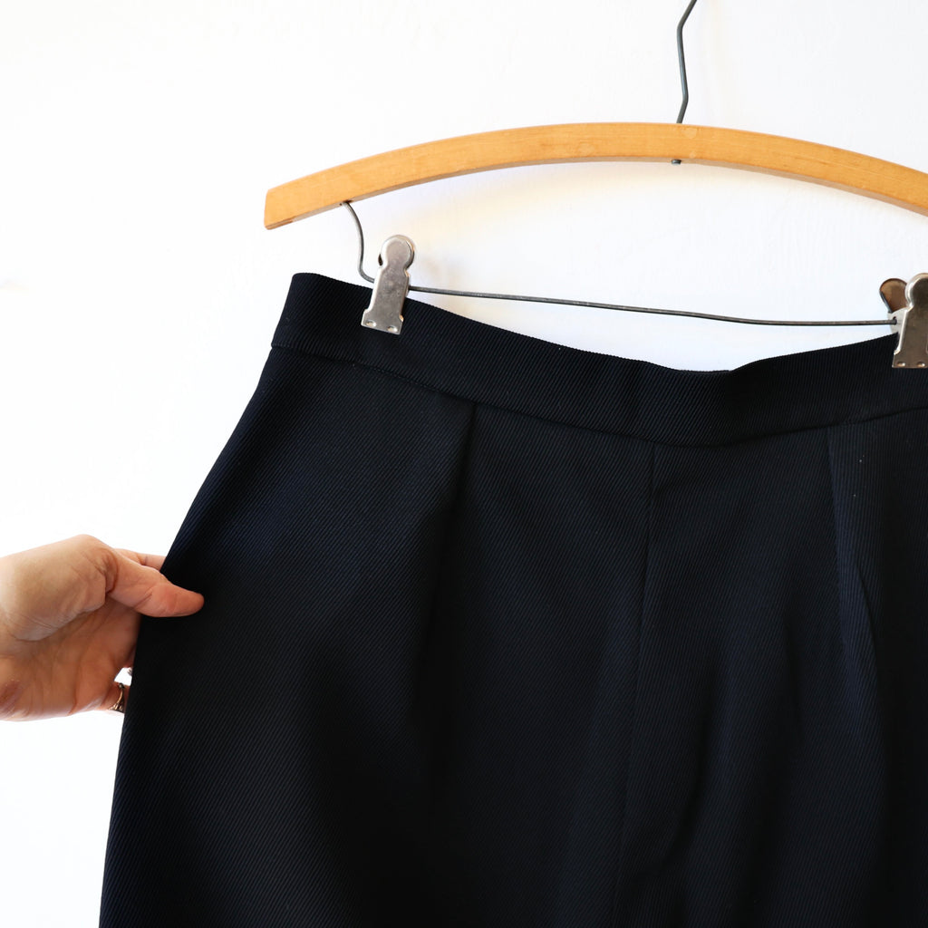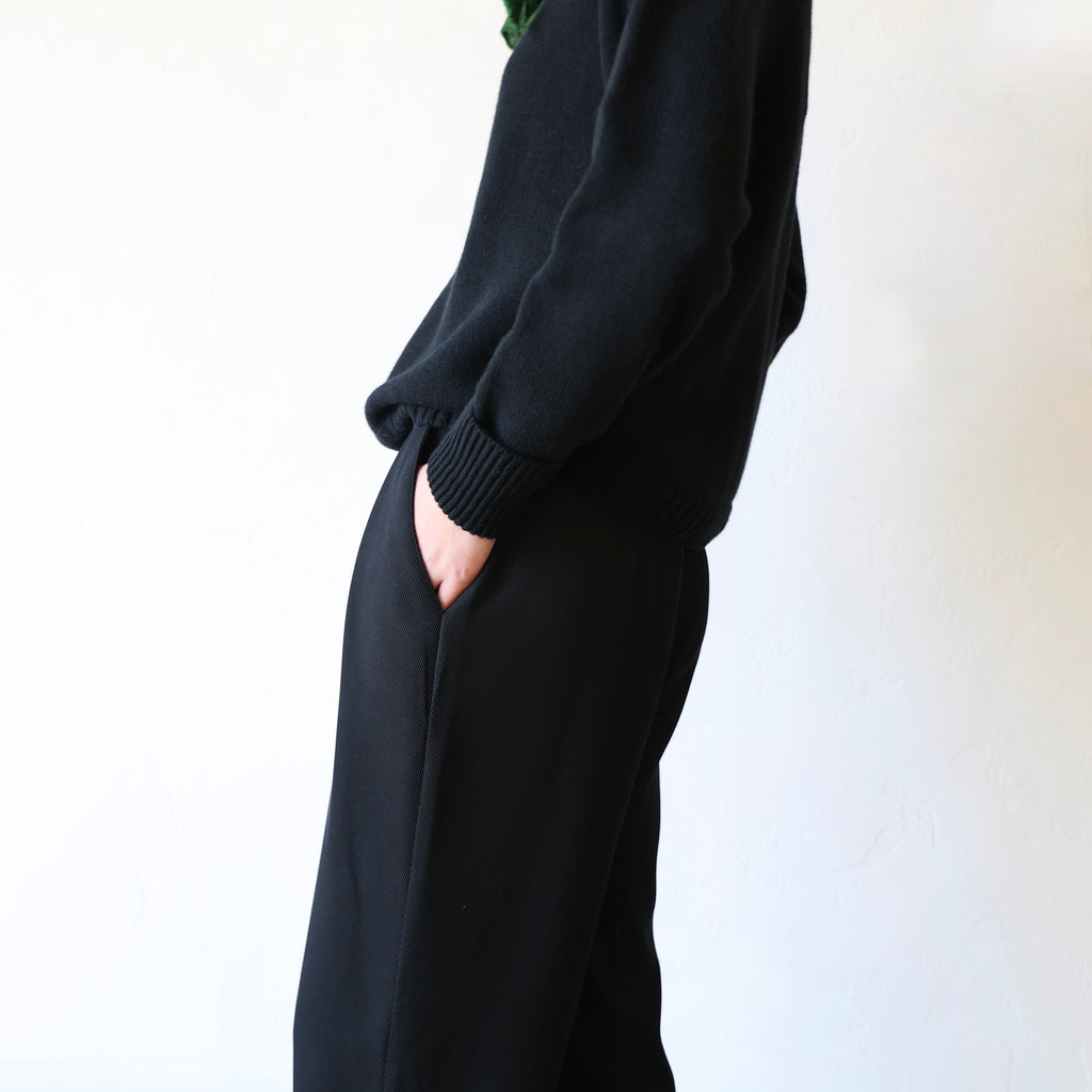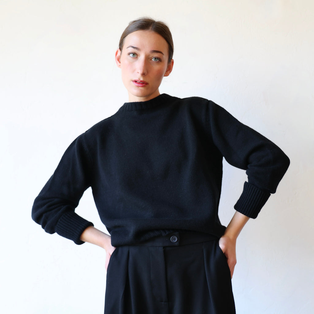 Beautiful pants made of a super fine Italian organic wool twill. They are very soft and almost slinky in touch and feel. They have a beautiful, classic fit with one pleat at each side of the front and darts at the back. They have side pockets, a zipper fly and a button closure. These are timeless and beautifully made. We show them with the Jud Glover Pullover in black and the Le Monde Beryl Mary Janes in Plum Patent.