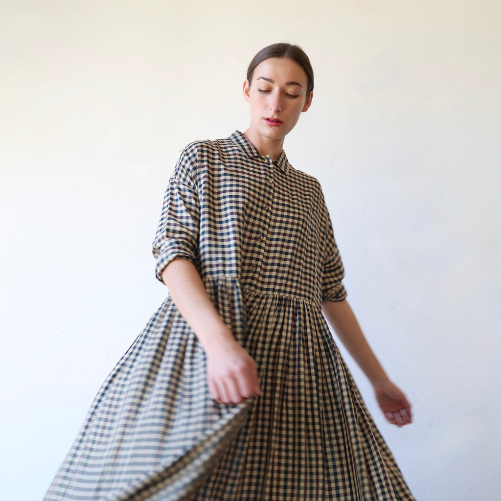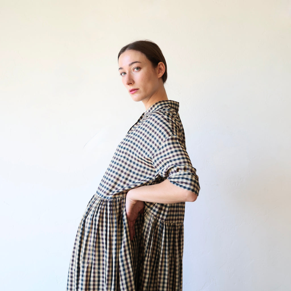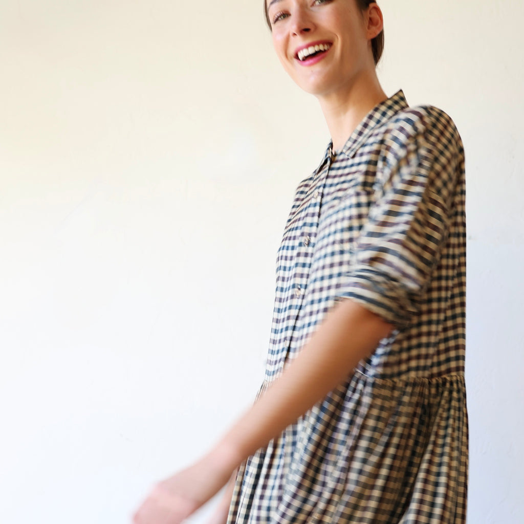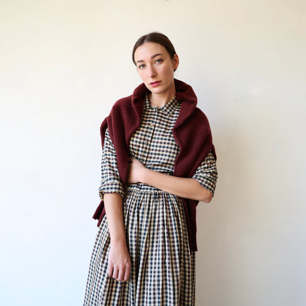 Runaway Bicycle Checks Dress - Maroon/Navy
