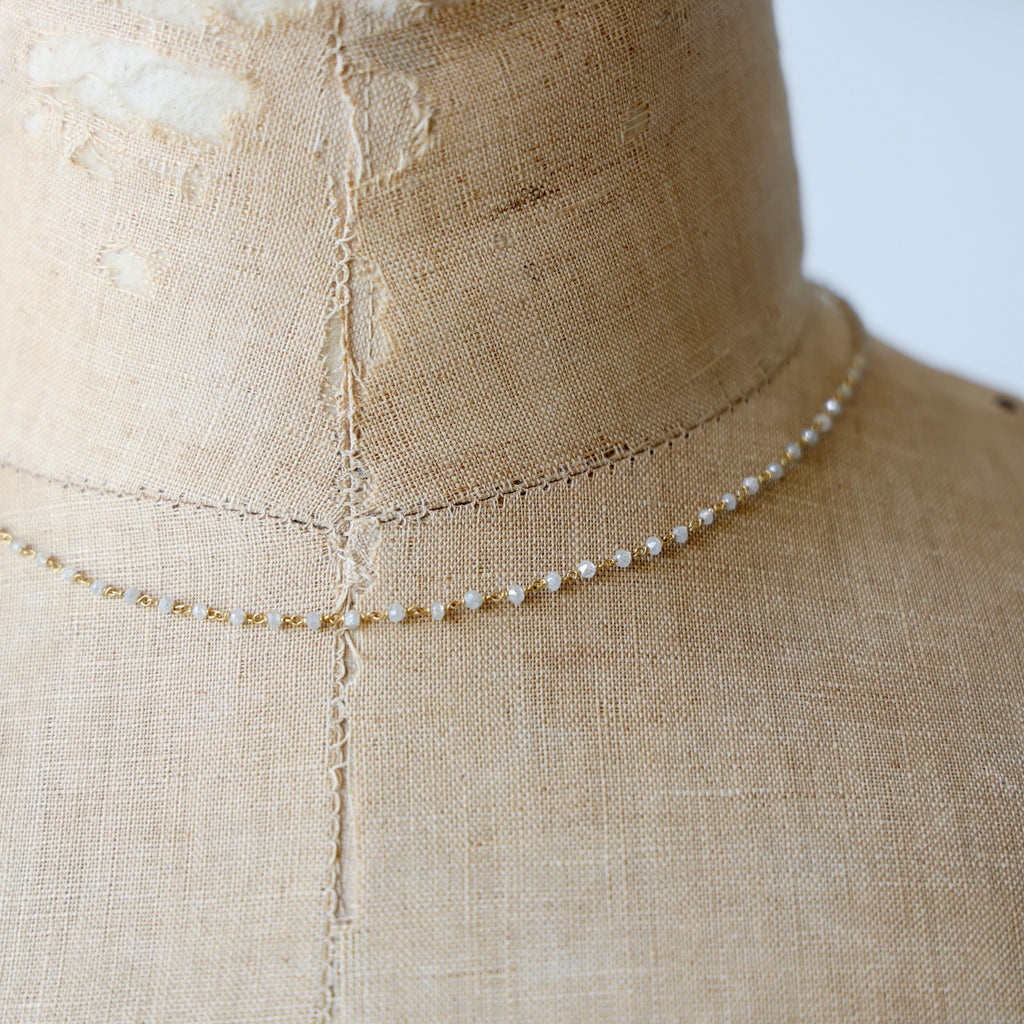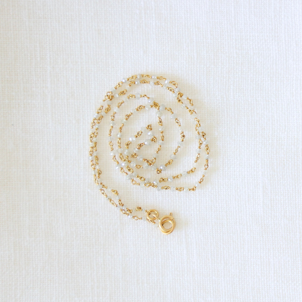 A beautiful, delicate necklace made of tiny faceted diamonds carefully strung on gold chain. The diamonds sparkle beautifully and look so pretty against the skin. You can layer this or wear it on its own, a beautiful, elegant necklace!