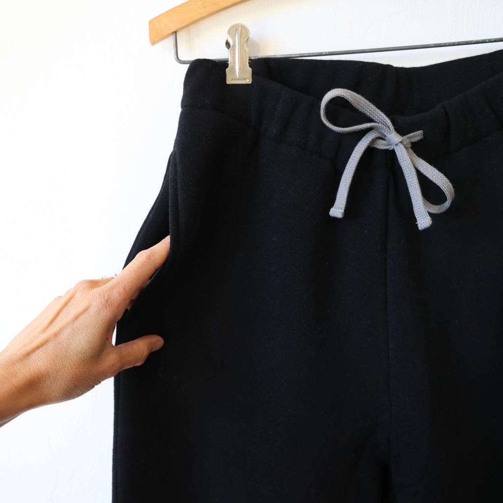 Super comfy and cozy sweatpants. These have an elastic waist with a drawstring as well. They have side pockets and the leg has an easy shape with a taper. They have a brushed feel on the outside with fleece on the inside. They look great with their matching cardigan. They are the perfect sweats, you won't want to take them off!