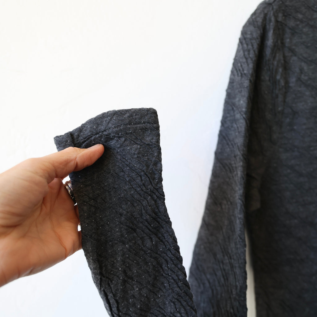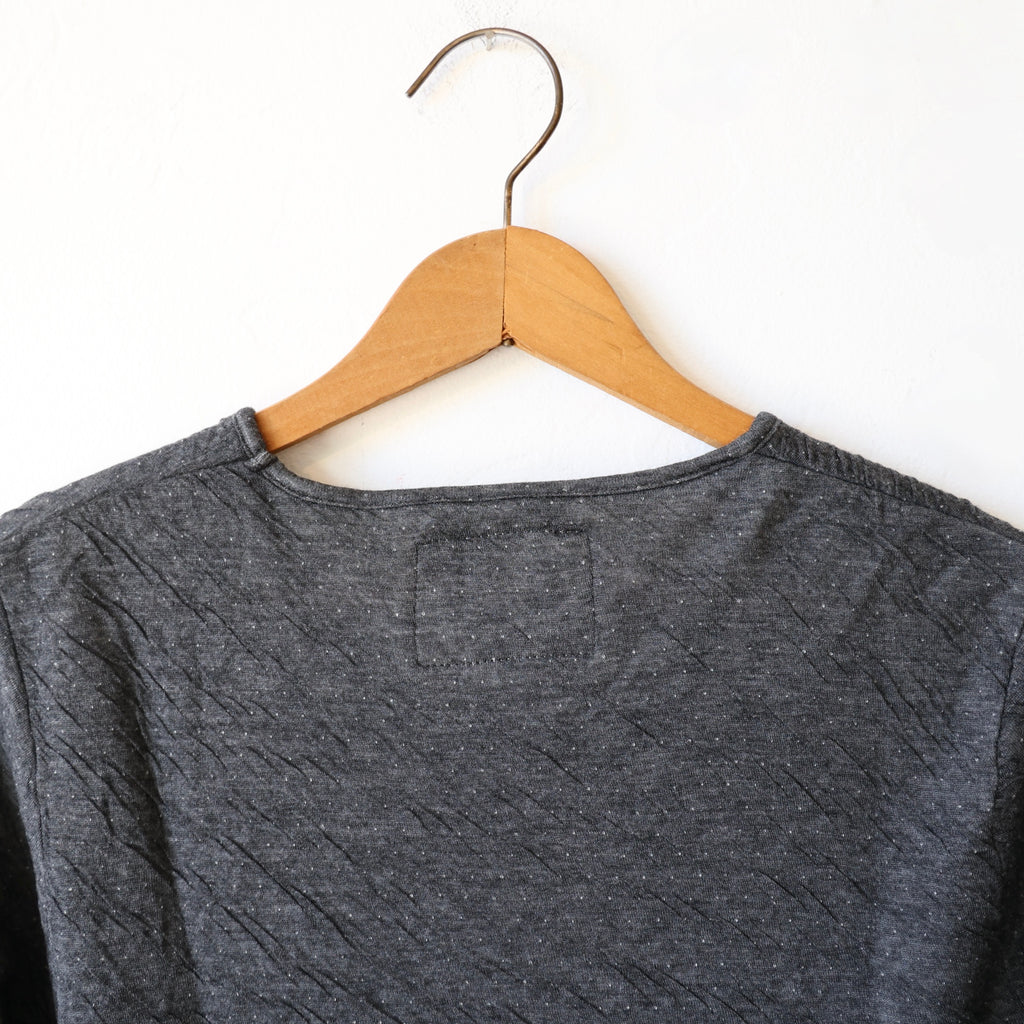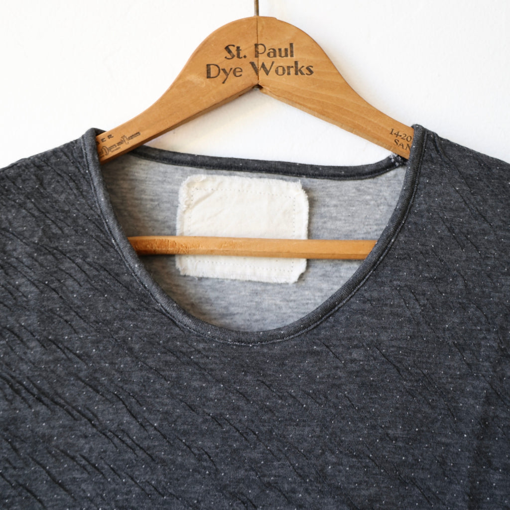 These tees are so lovely. They are made of a double face soft jersey which feels super comfortable and soft against the skin. These are great for layering in the winter - warm, but thin enough to be like a second skin. The double layer gives them a cozy feel while still being very light - they really have the best feel! The cotton has a lovely texture as well that we show in the photos. This color has a pattern of tiny white dots throughout - hardly noticeable until you look close. A sweet detail. We can't say enough about these and think they are such a great piece to have in any wardrobe.