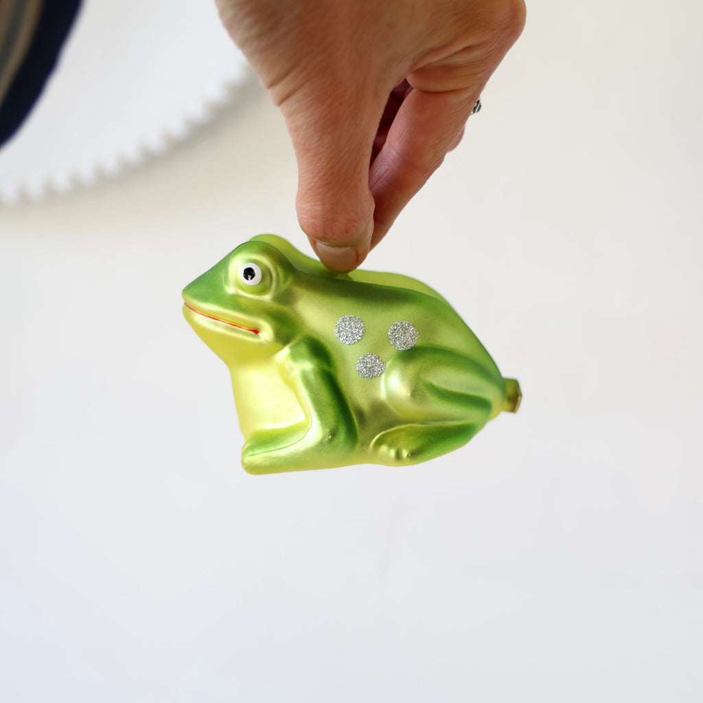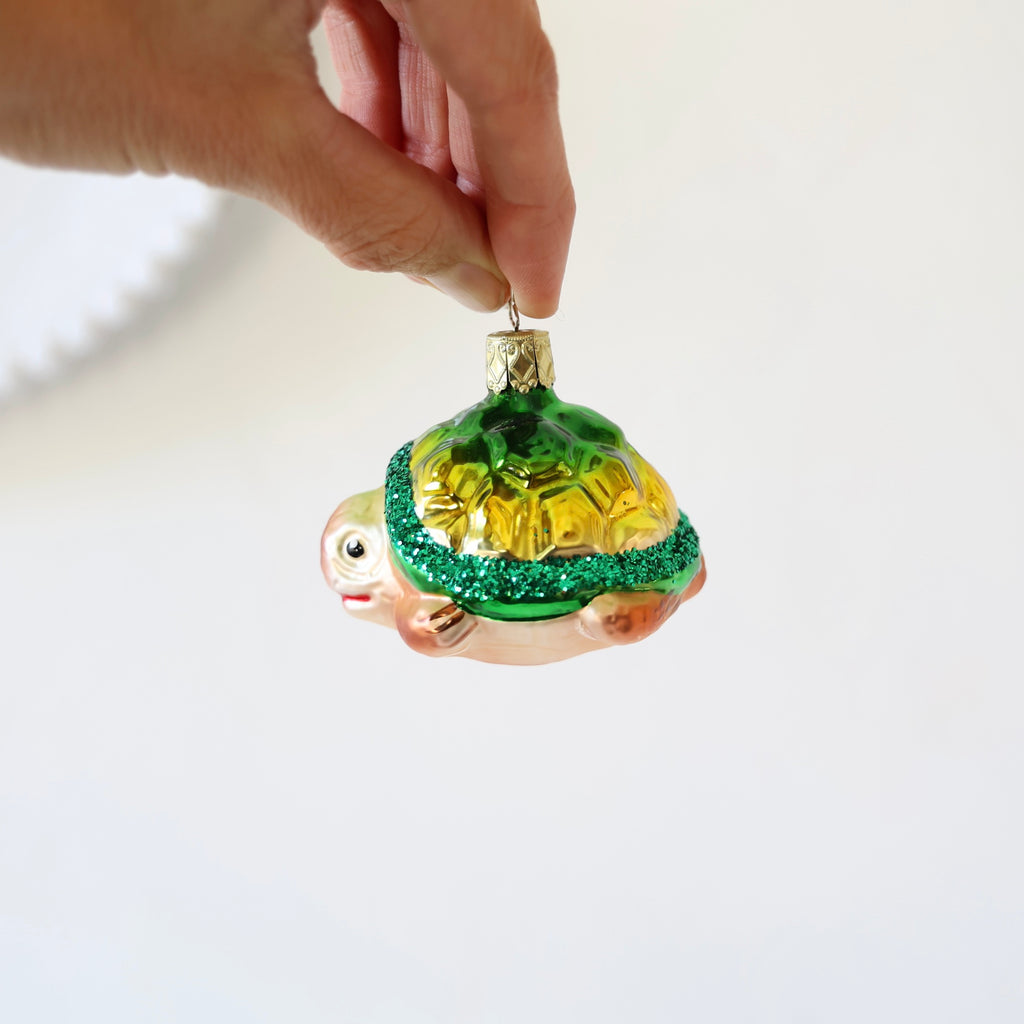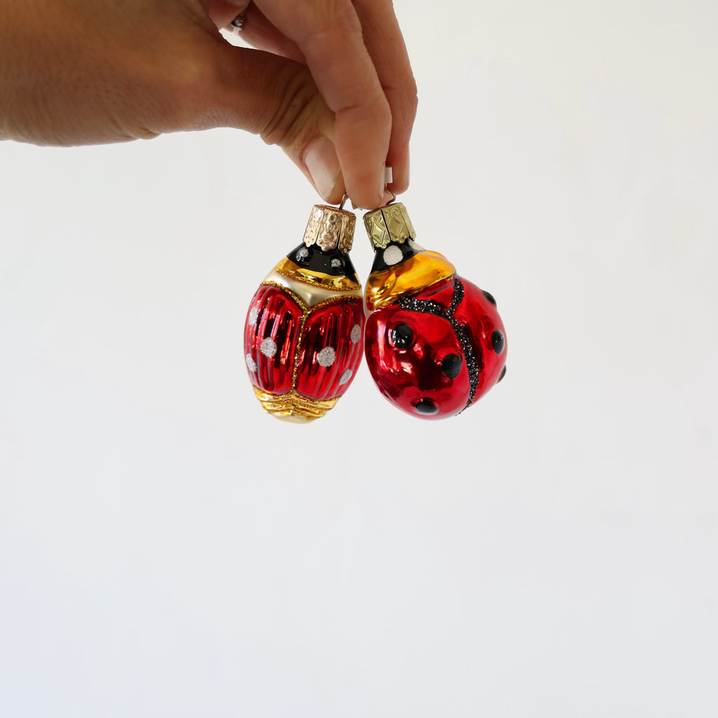 Blown Glass Ornaments - Animals and Ladybugs - 5 Options $ 22.00 Description Blown glass ornaments in the shapes of fun animals, a frog and ladybugs! These all have hand painted and/or glittered details. Each ornament sold individually style turtle - $ 32.00 lady bug with black spots - $ 28.00 lady bug with white spots - $ 22.00 guinea pig - $ 30.00 frog - $ 24.00