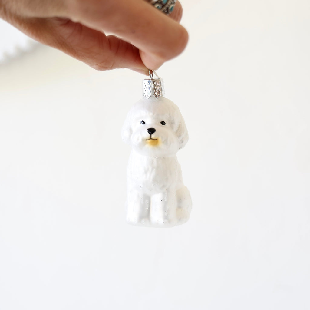 Blown glass ornaments in the shape of our furry friends! These have hand painting and glitter details. Choose from 5 different dogs.