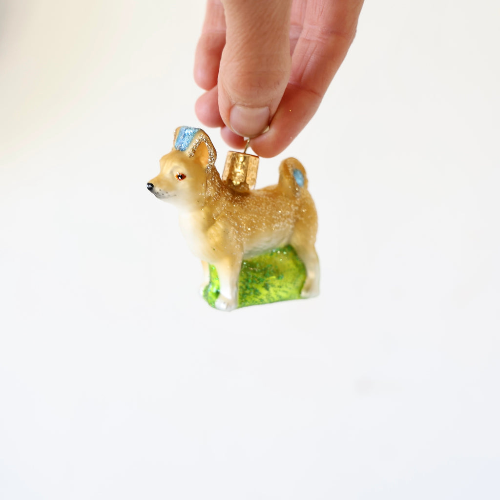 Blown glass ornaments in the shape of our furry friends... continued! These have hand painting and glitter details. Choose from 4 different dogs.