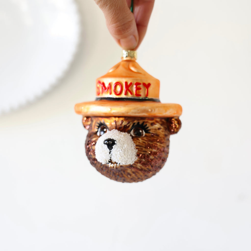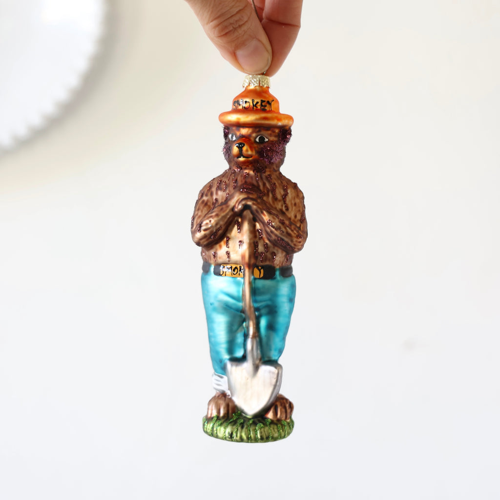 Blown Glass Ornaments - Smokey the Bear - 2 Options $ 28.00 Description Two versions of Smokey the Bear! These are wonderful blown glass ornaments with hand painted details. Each ornament sold individually style Smokey head - $ 30.00 Smokey with shovel - $ 28.00