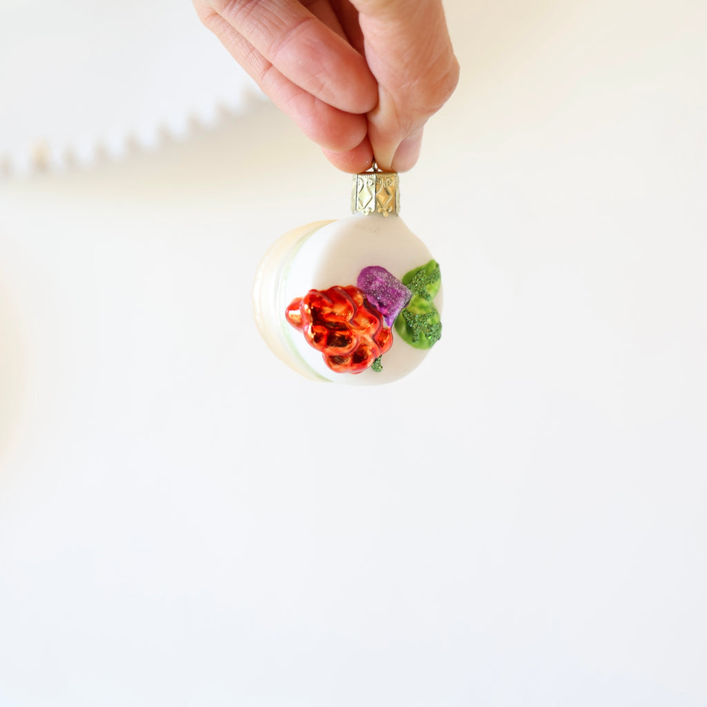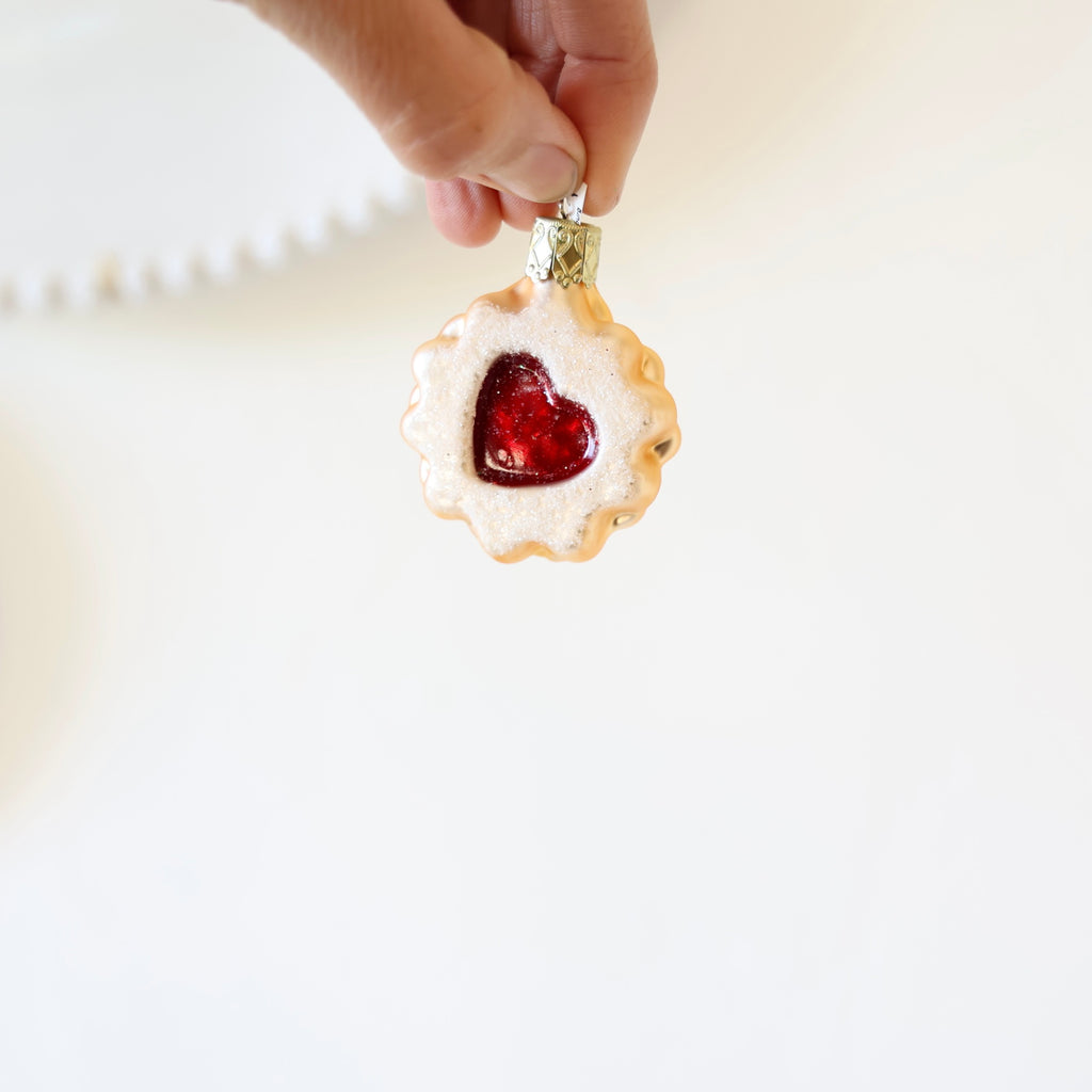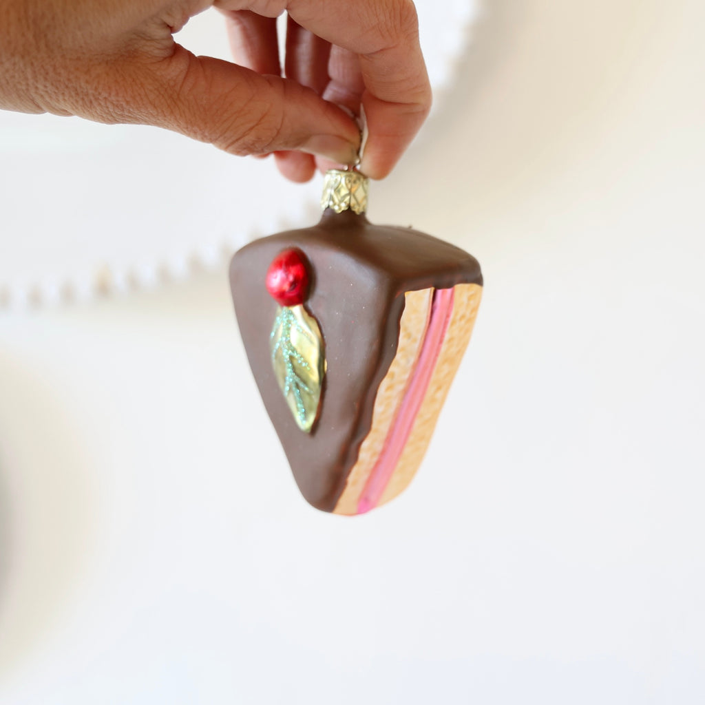 Blown Glass Ornaments - Sweet Treats #1 - 7 Options $ 15.00 Description These look good enough to eat! Beautiful sweet treat ornaments, from a cannoli to a slice of cake with a cherry on top! They all have hand painted and/or hand glittered details. Each ornament sold individually style yule log - $ 22.00 linzer cookie - $ 21.00 italian spritz cookie with red center - $ 15.00 cannoli - $ 30.00 slice of cake - $ 36.00 petit four - $ 29.00 madeleine - $ 20.00