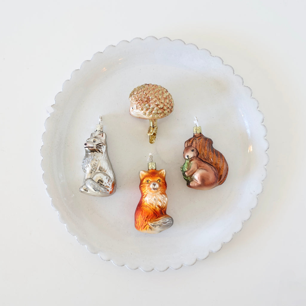 Blown Glass Ornaments - Woodland Animals - 4 Options $ 32.00 Description Beautiful woodland animal ornaments. Choose from 4 different animals. These all have hand painted and/or glittered details. Each ornament sold individually style squirrel - $ 41.00 wolf - $ 47.00 fox - $ 43.00 hedgehog - $ 32.00