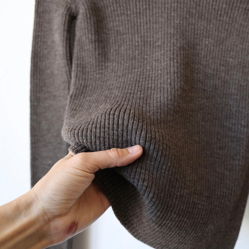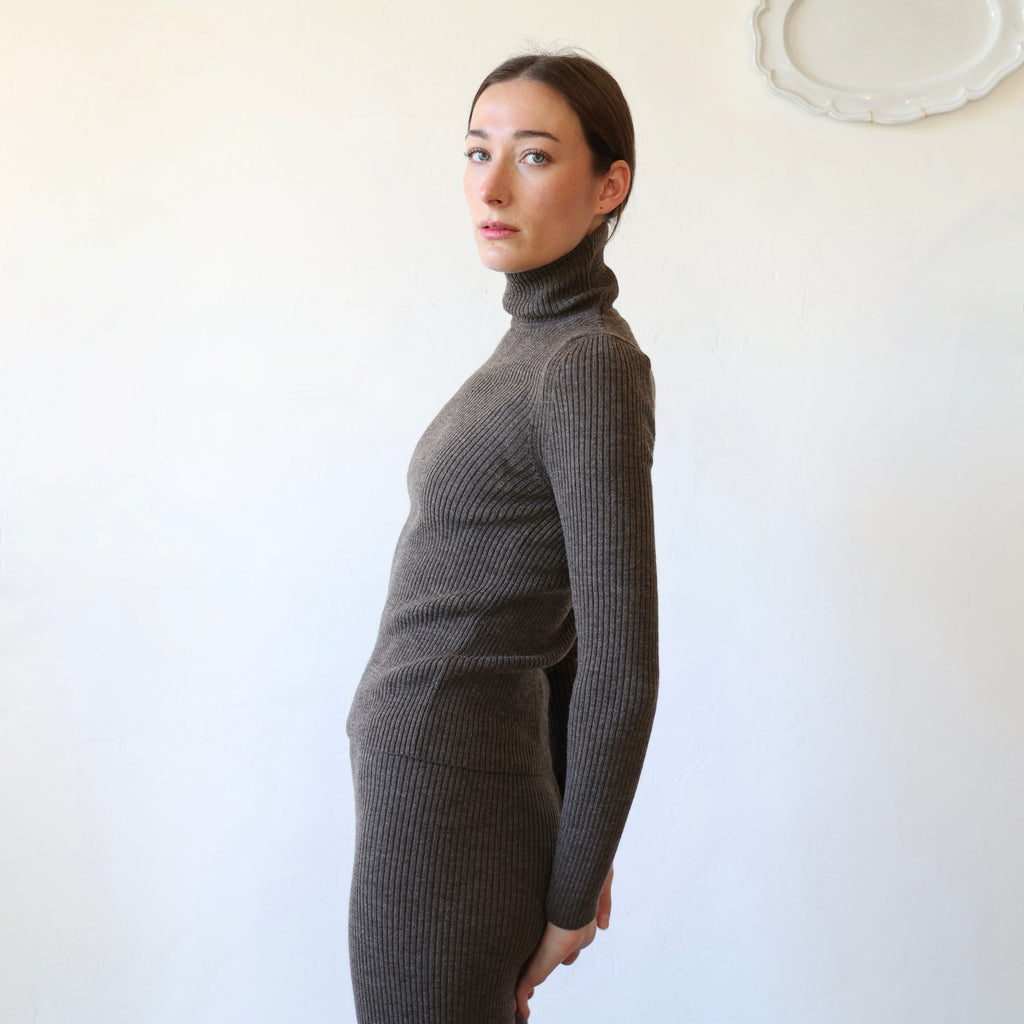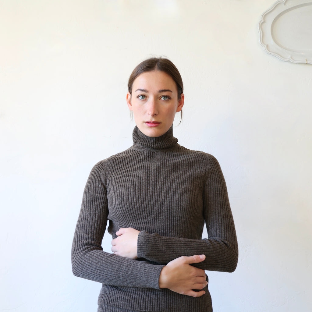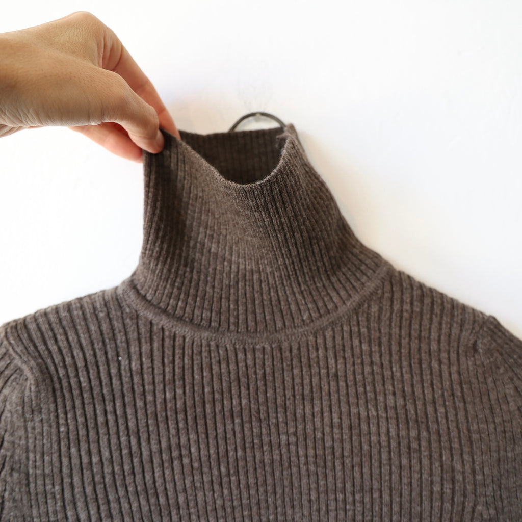 A gorgeous ribbed turtleneck made of a super fine merino wool. The turtleneck has a great length - without being folded down, it goes to the perfect spot - just below the face line. You can fold it down for a short turtleneck if desired. This is a great layering piece for warmth - it has a close fit. The merino wool feels great against the skin. It has a medium weight.... enough substance for a good amount of warmth. This is knit from undyed, natural merino wool. It's renewable, breathable and naturally elastic - softening and adapting to you over time.